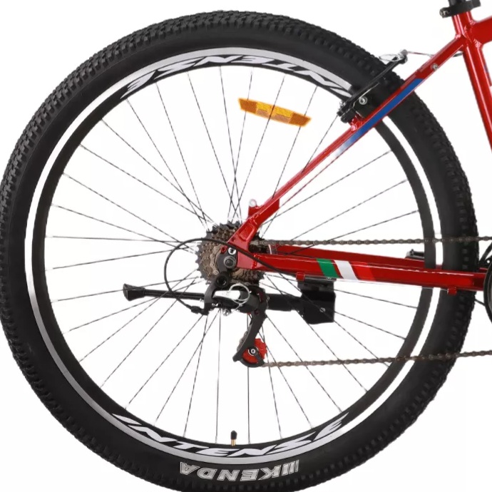 ترمزهای V-Brake آلومینیومی نیز عملکرد قابل اعتمادی در ترمزگیری سریع و ایمن ارائه میدهند. تایرهای پهن و مستحکم KENDA K1153 سایز 2.35، چسبندگی عالی روی انواع سطوح از جمله سنگ ریزه، خاکی و گل آلود دارند و کنترل بهتری در پیچها و مسیرهای لغزنده فراهم میکنند.